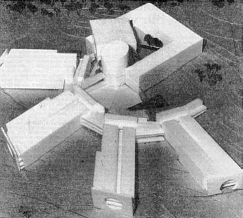 Die Kreistagsabgeordneten gaben am Montag diesem Krankenhausmodell des Architekturbüros Monnerjan den Vorrang. Vier Pflegetrakte sollen sich sternförmig um einen Behandlungstrakt ordnen und durch unterschiedliche Geschossigkeit dem Hang in der Neuen Heimat in Zschopau anpassen. Foto: Murkowski |