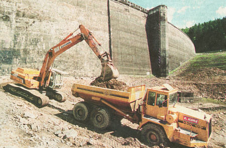 Als größtes lnvestitionsvorhaben der Talsperrenverwaltung Sachsen wird gegenwärtig die Talsperre Neunzehnhain II zwischen Zschopau und Marienberg saniert. Die vor über 80 Jahren errichtete, bis zu 39 Meter hohe Staumauer war im Laufe der Zeit undicht geworden. Bis zu zwölf Meter unter dem Bachlauf wird derzeit vor der Mauer das Erdreich abgetragen. Auch ihr Betonschutzmantel, der komplett erneuert werden muß, ist bereits zur Hälfte abgebrochen.