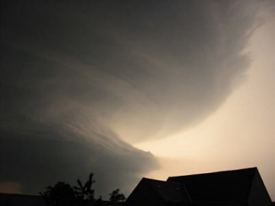 Bedrohlich formte sich am Abend des 29. Juli 2005 eine Wolke wie ein riesiger Kreisel über Krumhermersdorf. Zunächst schien sie westwärts am Dorf vorbeizuziehen. Dann änderte sie innerhalb weniger Minuten ihre Richtung und zog über das Dorf hinweg.