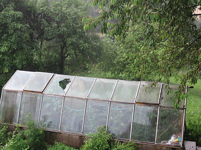 Es begann ein Hagelwetter, wie sich keiner erinnern konnte: Körner größer als Hühnereier, stachlig und steinhart, fielen aus der Unwetterwolke. Gewächshausdächer und Dachfenster gingen zu Bruch.