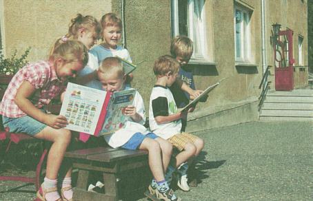 Heute heißt die Kindertagesstätte Bienenhaus und bietet mehr als 60 Mädchen und Jungen Platz. Es gibt eine großzügige Außenanlage. »Wir sind eigentlich ausgebucht«, freut sich die Erzieherin, während sie der sechsjährigen Michelle die Haare kämmt. »Wir hatten in diesem Jahr 13 Schulanfänger, 2006 sind es neun, dann geht die Zahl wieder nach oben.« Auch die Hortkinder, die nach dem Unterricht an der Grundschule Am Zschopenberg wieder nach Krumhermersdorf kommen, werden in der alten oberen Schule betreut.