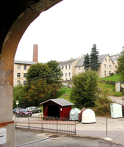 Eine schnelle Reaktion - alle Achtung! Der grün bewachsene Fabrikschornstein des ehemaligen VEB HESOTEX wurde um mindestens zwei Drittel niedriger. Womit die Gefahr herabfallender Ziegel gebannt sein dürfte. Die Einwohner der Umgebung wissen es zu danken!