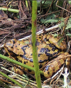 | Eine Kröte sucht Unterschlupf. | Reifenspuren im Biotop. |