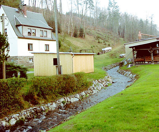 Der Dorfbach im Unterdorf ist ein richtig schöner Bach, kein Abwasserkanal mehr wie weiter oben. Doch die Idylle kann täuschen: Mindestens einmal im Jahrhundert rauscht ein reißender Fluss zu Tale und reißt alles mit sich. 1748, 1755, 1890, 1898, 2002.