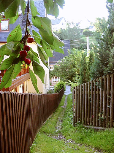 Die steile alte Kirchzufahrt, die das Grundstück (Reichel) an der Straße schräg durchschnitt, wurde so nicht mehr gebraucht.