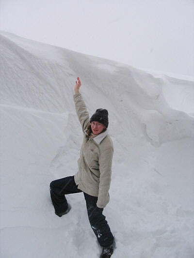 Oberer Ortsausgang Der kundige Autofahrer weiß längst: Am oberen Ortsausgang muss er bei Schnee richtig Schwung haben, sonst ist umkehren angesagt. Manchmal hilft freilich auch noch soviel Schwung nicht, wie an dieser Schneewehe von 2001 zu sehen ist.