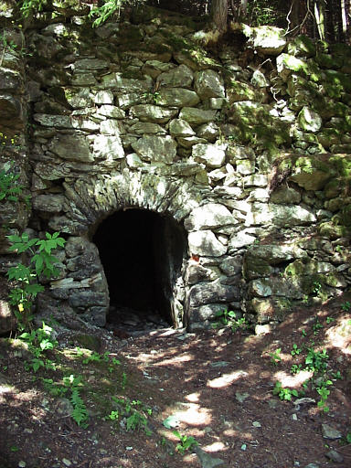 Noch ein Kalkofen ... An der unteren Talsperre finden wir, im Gebüsch versteckt, noch Reste einiger Kalköfen. Sie belegen den Abbau von Kalklinsen, die dem Glimmerschiefer eingelagert sind. Die nächste befindet sich wenig weiter hangaufwärts, zwei weitere stehen unterhalb der Talsperre am linken Talhang an. |