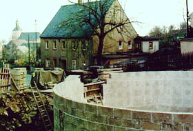 Natürlich kam diese Maßnahme nicht ohne DDR-Alltag aus. Keine Klobecken lieferbar, keine Muffen zu den Rohren verfügbar, und das Projekt am Schreibtisch im Rat des Kreise gemacht. - Irgendwann kam die zuständige Projektbearbeiterin zu uns, auf dringende und mehrfache Bitte, weil das Abwasser auf dem geplanten Weg hätte bergauf fließen müssen. Sie kam zu Fuß von Zschopau (5 km), weil kein Fahrzeug verfügbar war ... |