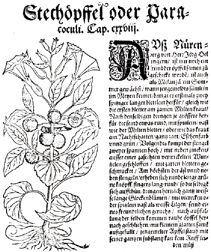 Johann Baptist Porta berichtete 1581 in seiner in Neapel erschienenen Magiae naturalis darüber, wie man Menschen anläßlich festlicher Gelage zur Belustigung für einen Tag verrückt machen könne, ohne ihnen einen gesundheitlichen Schaden zuzufügen. Als Mittel nennt er Alraune, Tollkirsche und Stechapfel.