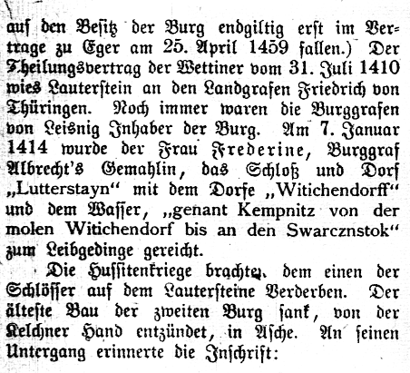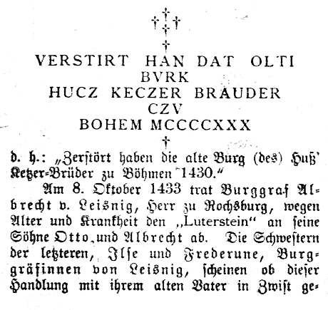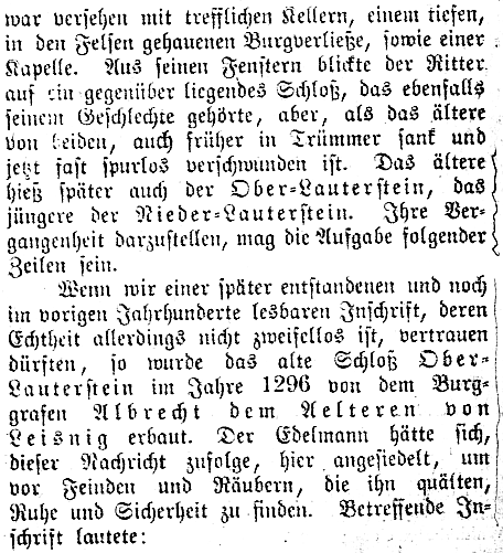 Weitgehend veraltete Darstellung der Geschichte dieser Burg, vermischt mit der Geschichte