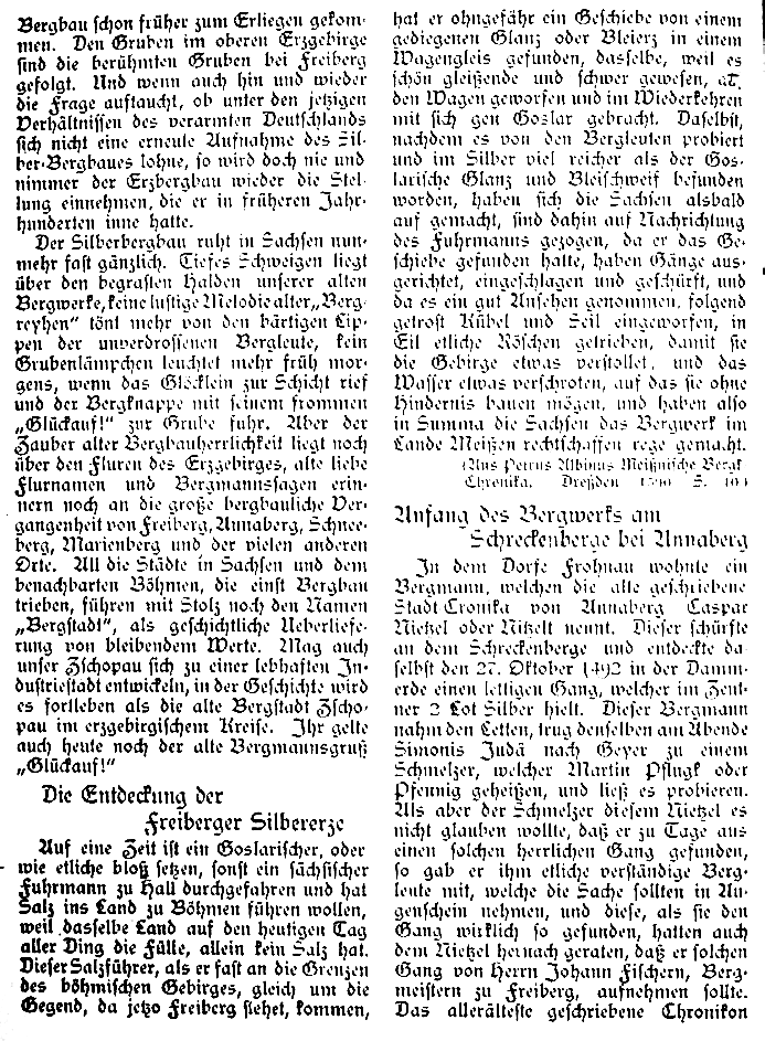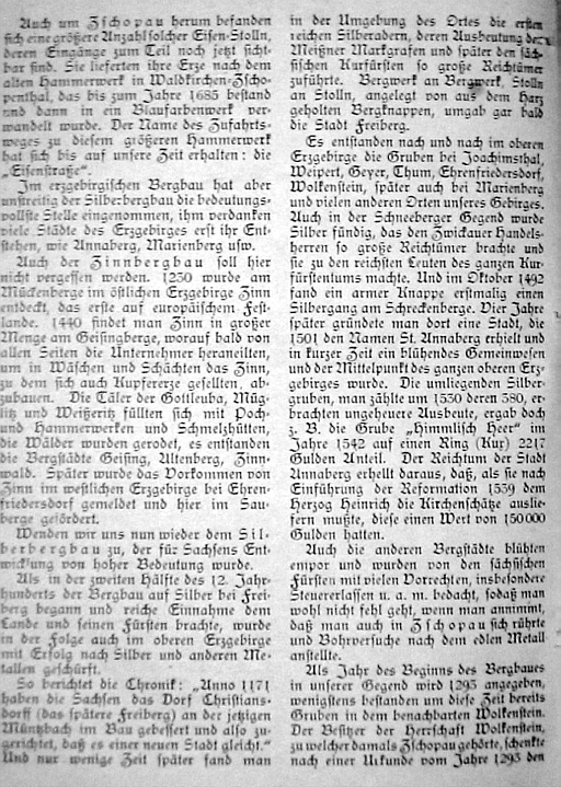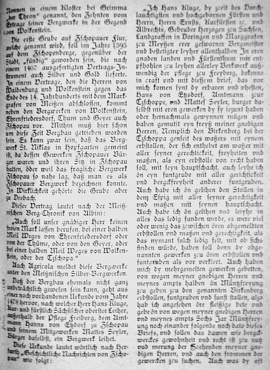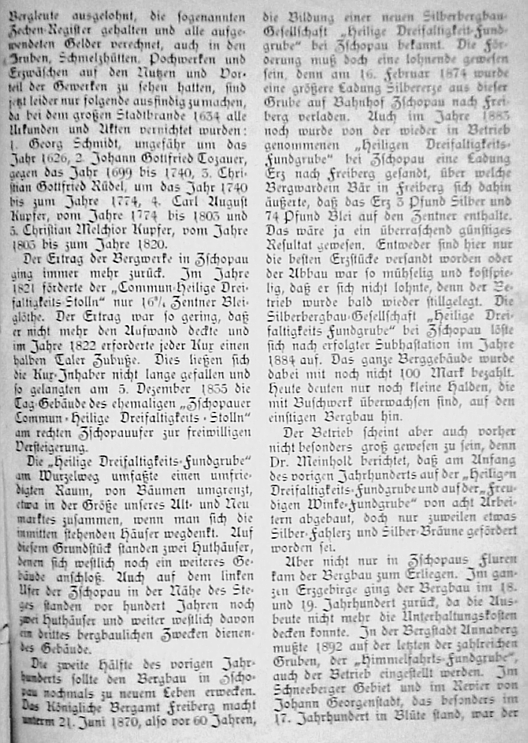 Zusammenstellung von (damals) bekanntem Wissen zum Bergbau in Zschopau. Umfangreich, aber die Quellen sind kaum dokumentiert.