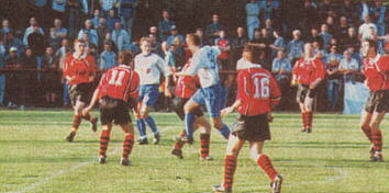 Die Polizei läßt einen Barkas von dkk Scharfenstein passieren. Dieser Betrieb unterstützt die Krumhermersdorfer seit 1984 zusätzlich zum Kreisbaubetrieb Zschopau. Der Beschluß des Fußballverbandes, durch den die Zahl der Ligamannschaften verringert, die Anforderungen an sie aber vergrößert wurden, ließ die Sportgemeinschaft von Krumhermersdorf und das Kombinat zu Verbündeten werden.